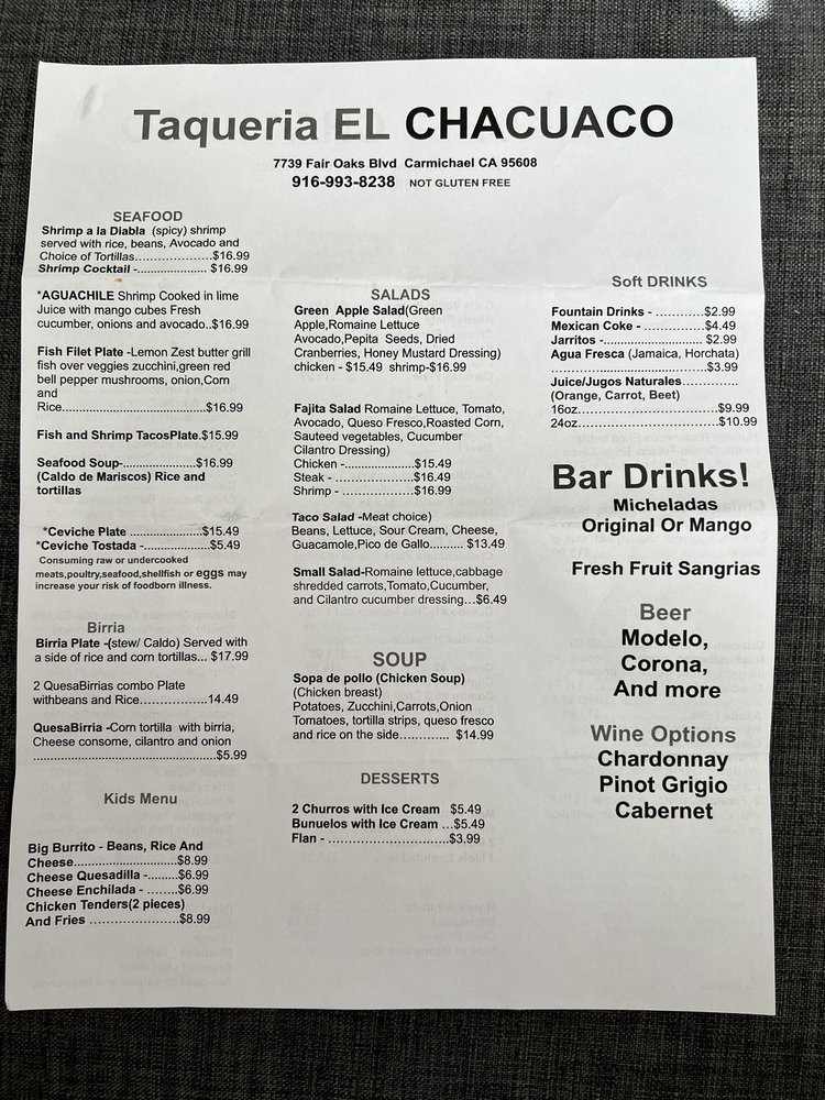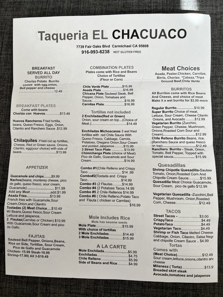Welcome to El Chacuaco Taqueria, your new go-to spot for authentic tacos and vibrant Mexican flavors located at 7739 Fair Oaks Blvd, Carmichael, CA. This colorful taqueria specializes in a wide array of tantalizing options, from flavorful a la carte mole enchiladas and Chile Rellenos to seafood delights like Shrimp A La Diabla and Ceviche Tostadas.